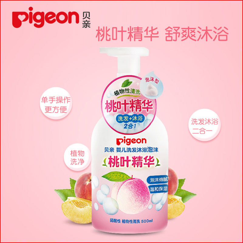 Beichen Peach water newborn baby shampoo shower gel Peach leaf essence Children's foam shower gel two-in-one official