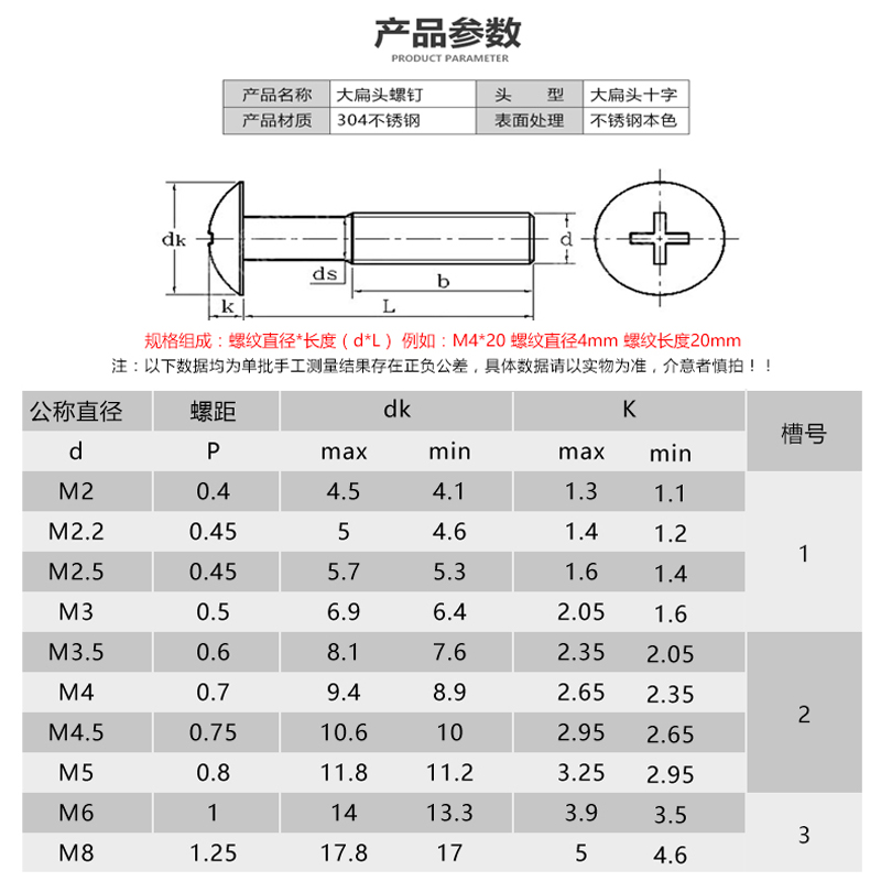 M3M4M5M6M8 201 stainless steel large flat head screw machine screw mushroom head * 6-8-10-16-20-40-Taobao