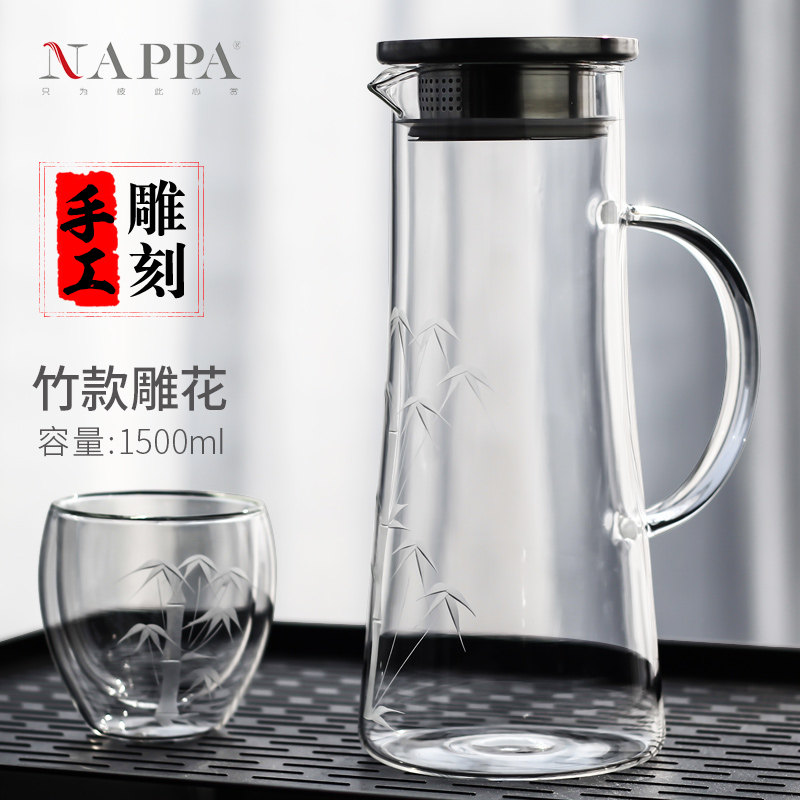 NAPPA European style household glass kettle Hand carved flower cold water kettle Cold water kettle Heat-resistant glass juice lemon kettle