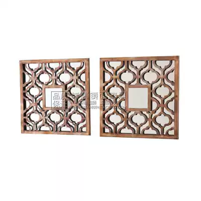 Nordic square decorative mirror European combination mirror Wood carved entrance mirror Soft home wall mirror combination mirror