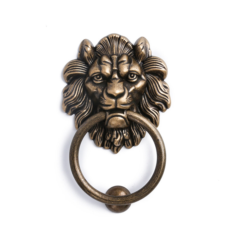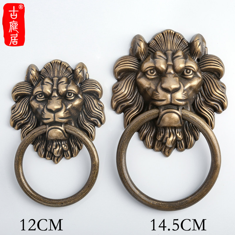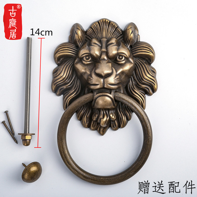 Old solid wood gate ring beast head bronze handle ancient built villa outdoor lion head pull ring handle antique door decoration