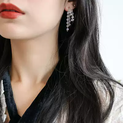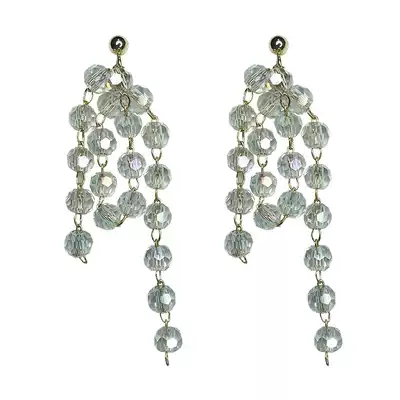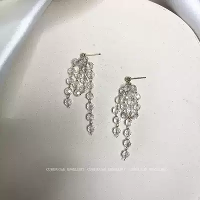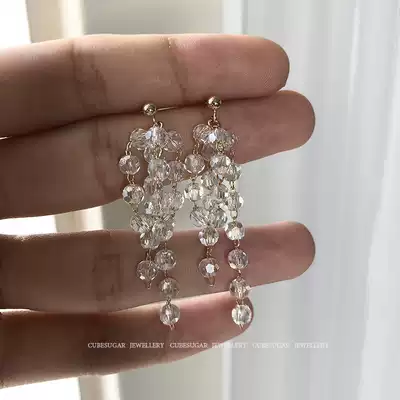 Sugar fondhouse clear imitation crystal earrings American 14K gold gold high protection color Net red super fairy tassel temperament earrings
