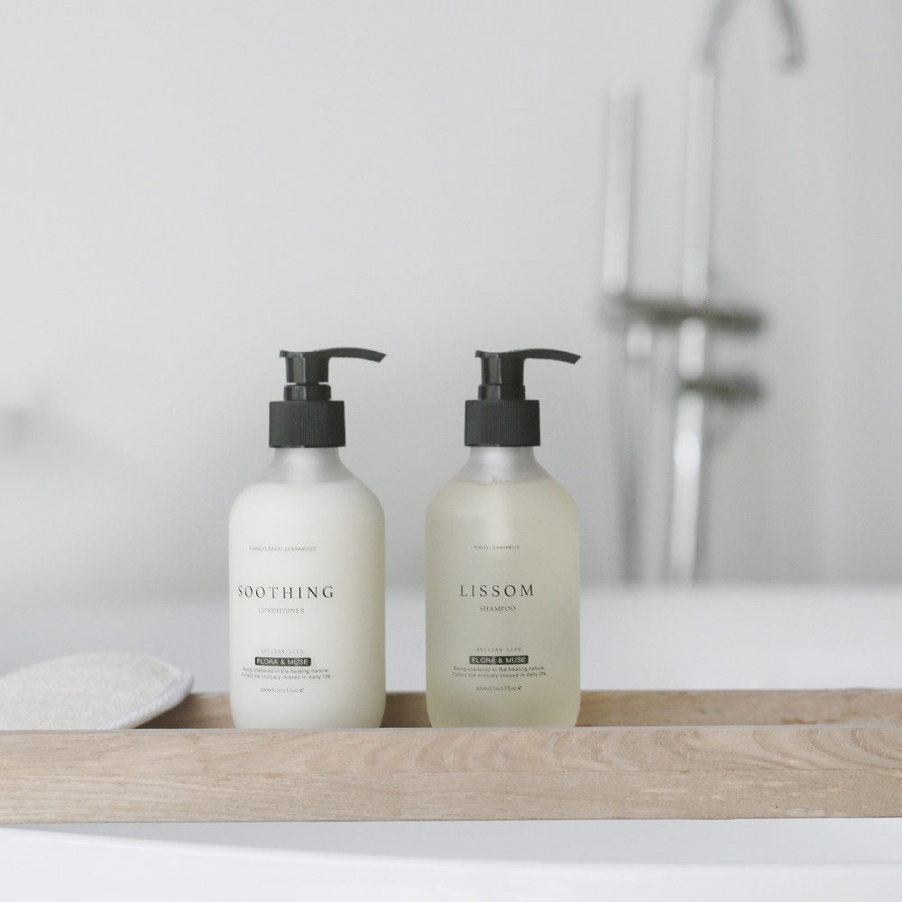 One bottle of shampoo One bottle of conditioner (soothing) black grass Cedar conditioner (light) Thuja Hazel shampoo