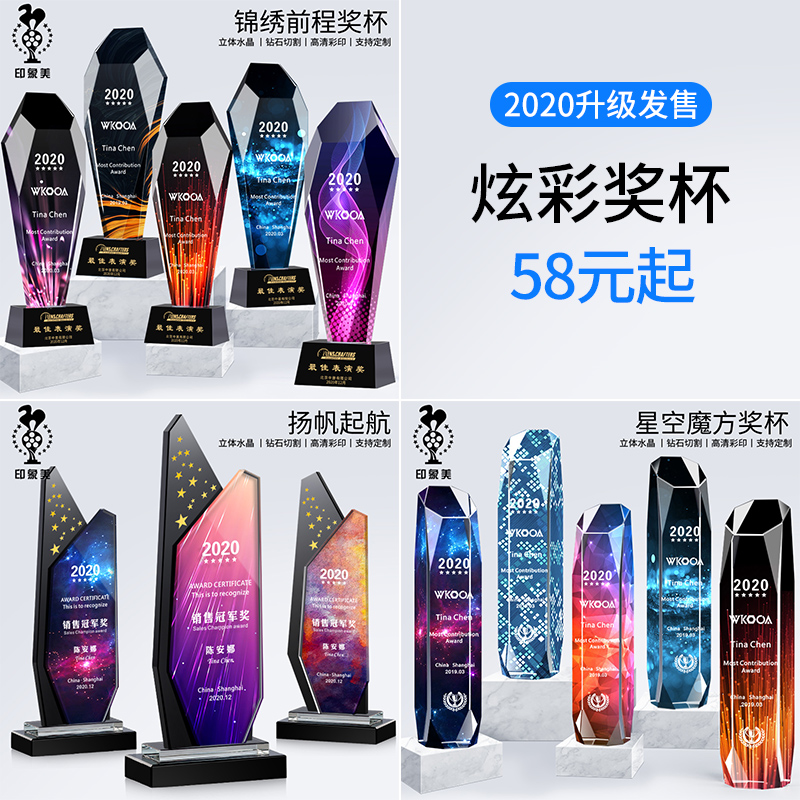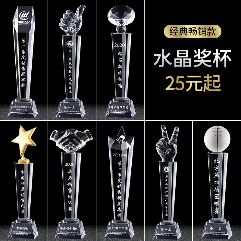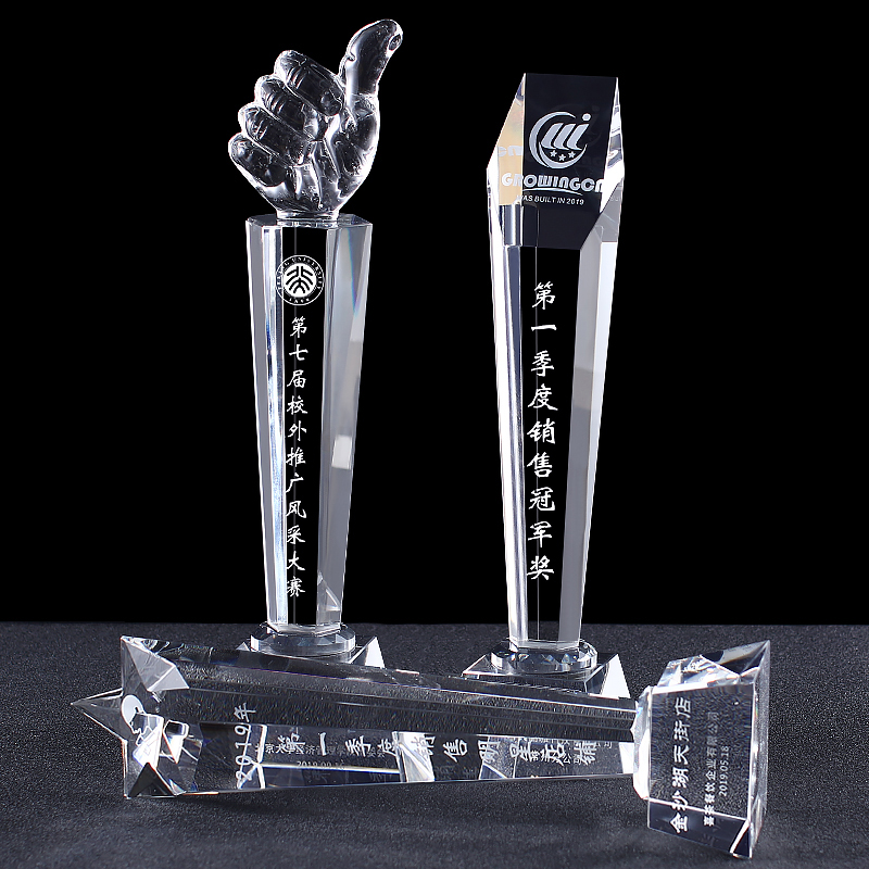 Crystal Trophy Custom Pentagram Thumbs Trophy Honoring Outstanding Employees Veterans Memorabilia Set