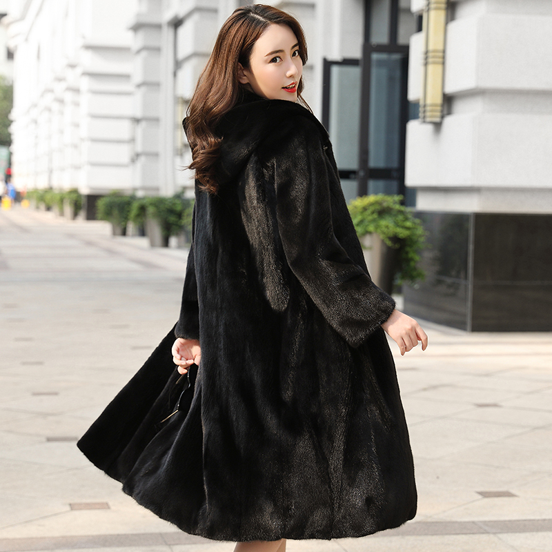 2022 new products Haining imported fur women's hooded whole mink mid-length mink coat mink coat Korean version
