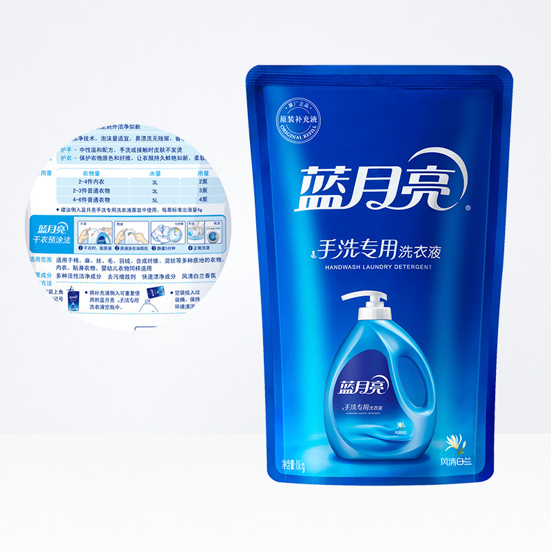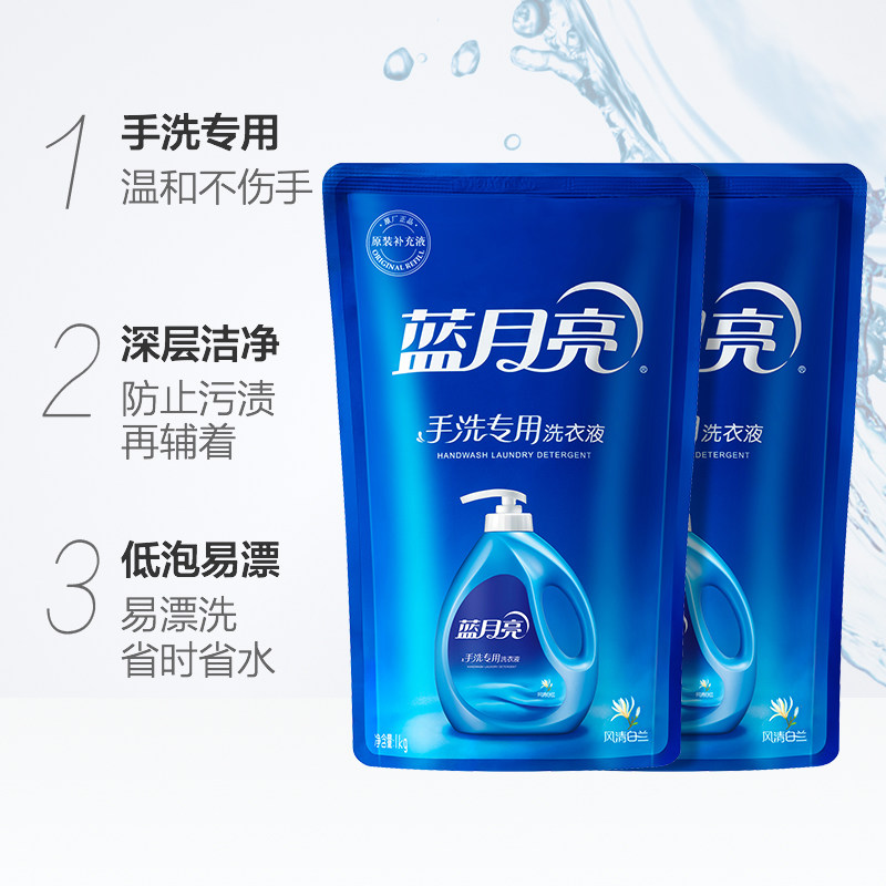 Blue Moon hand wash special laundry detergent 4kg bags 1kg * 2 bags supplement Fengqing White Orchid family clothes