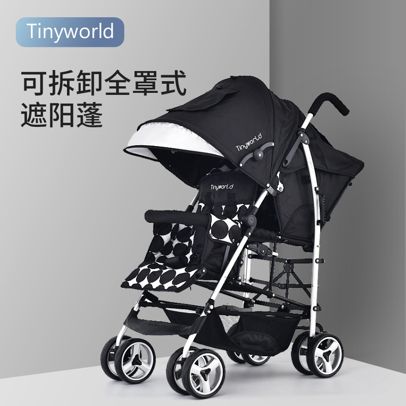 Tinyworld portable twin stroller Large and small baby stroller can sit and lie on the twin stroller
