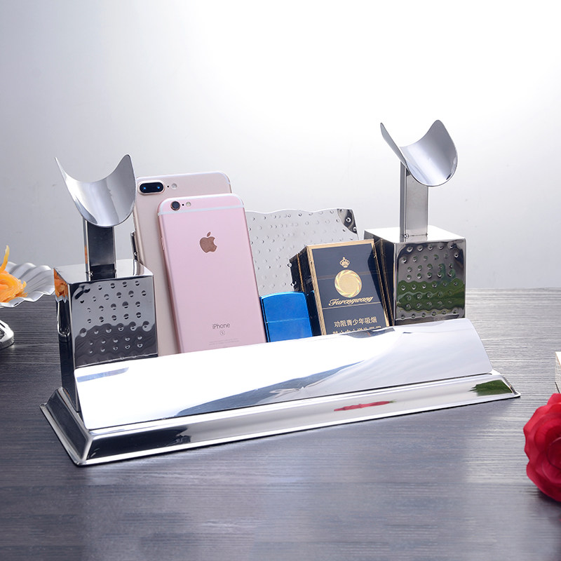 Bar ktv desktop multi - functional microphone frame mobile phone remote control capsule box stainless steel