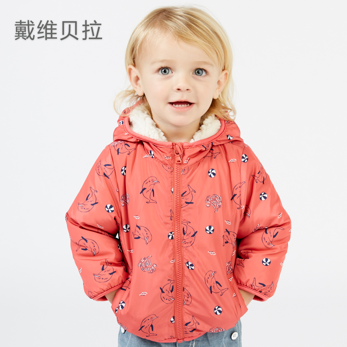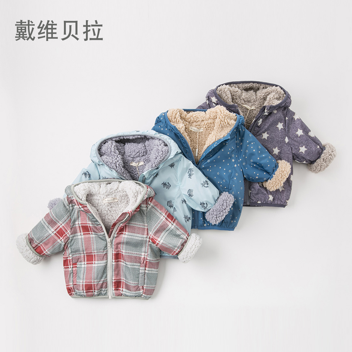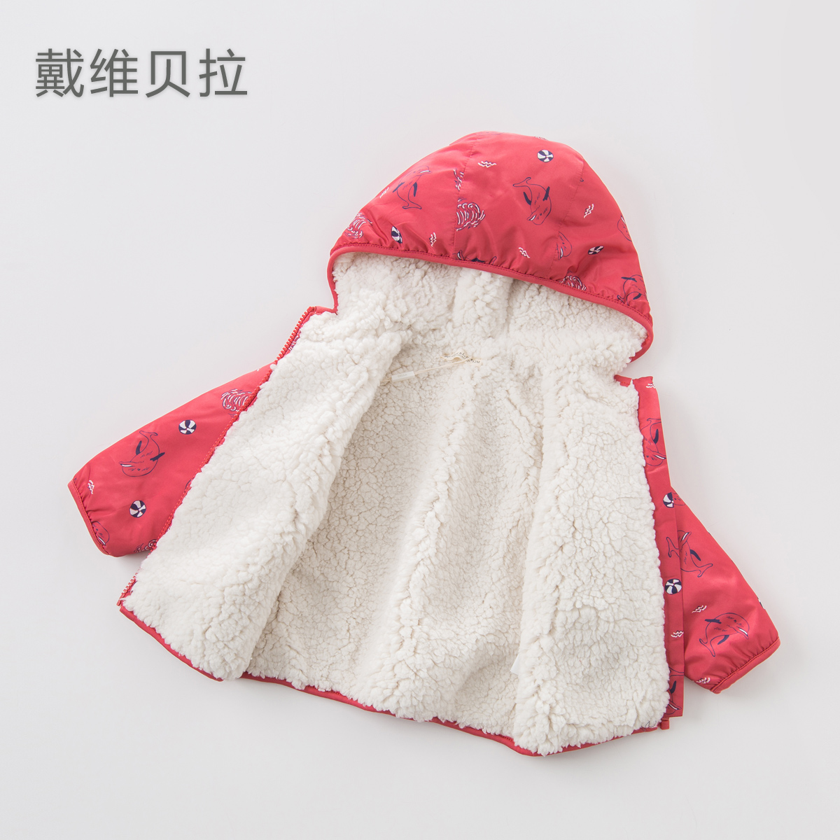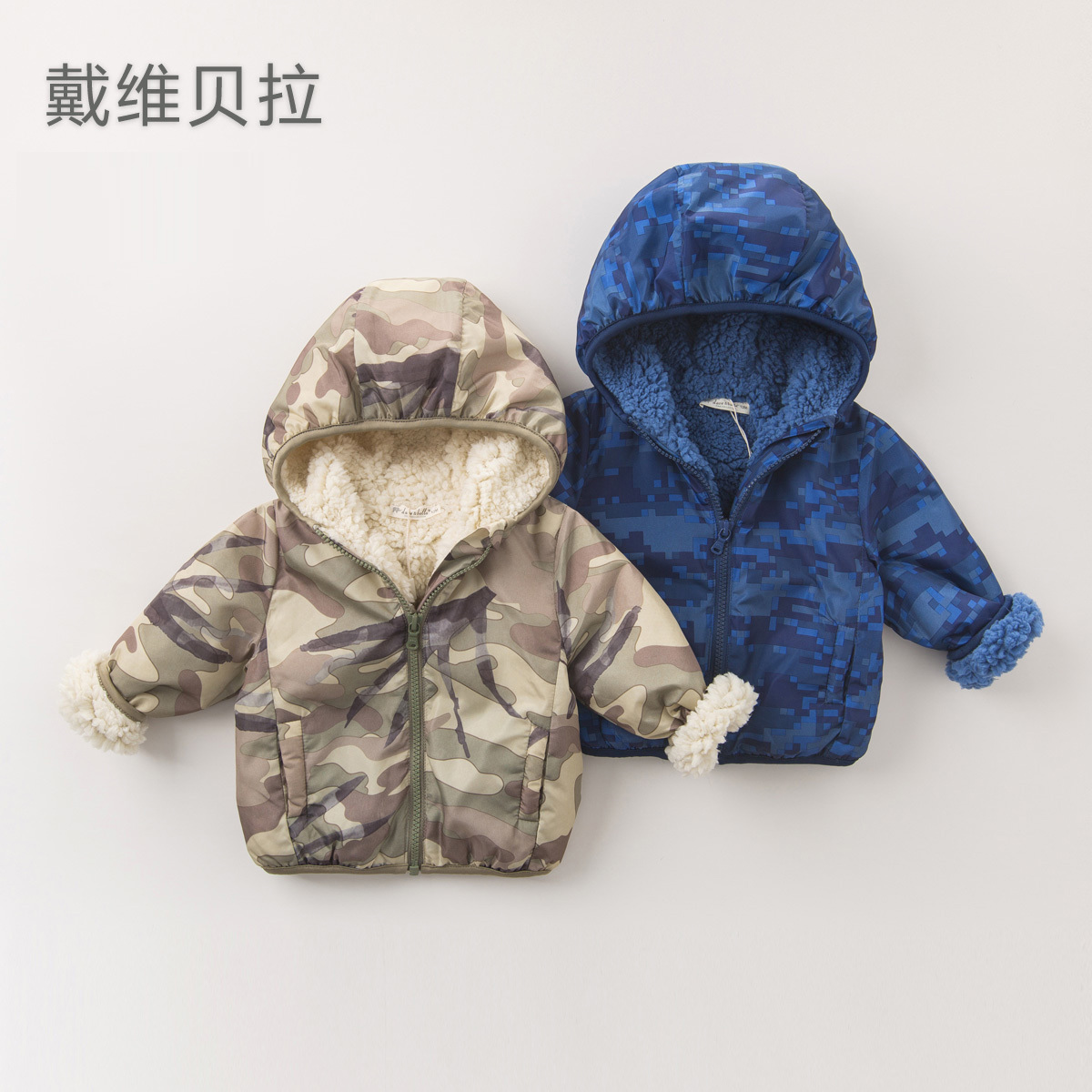 XJ (plus velvet) David Bella boy baby new autumn and winter printed hooded jacket plus velvet thickened to keep warm