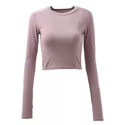 Sexy umbilical long-sleeved sports top women's tight elastic round neck thin quick-drying fitness running training yoga clothes