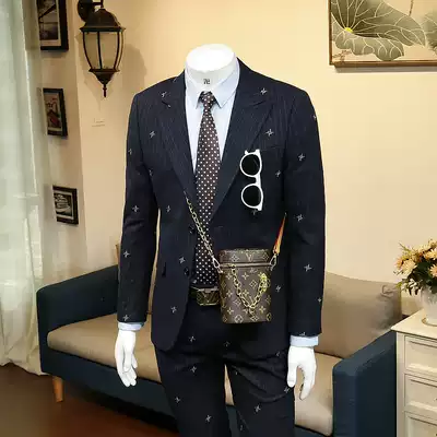 136524 autumn season East Gate business dress slim Korean handsome embroidery men casual suit two-piece suit