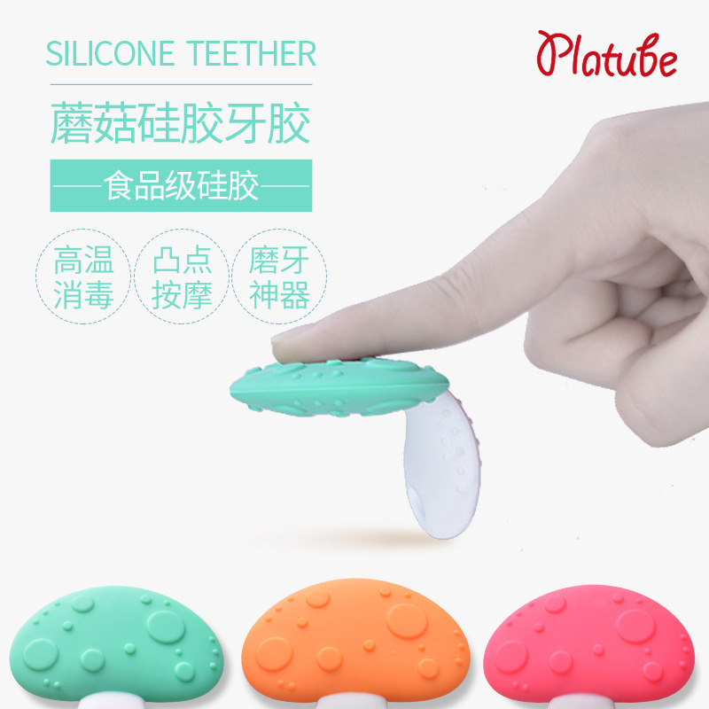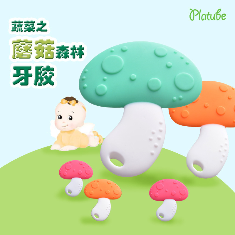 Baby mushroom solid teeth holder 0-6-12 months baby non-toxic silicone gel grinders with water to cook bites gum Toys