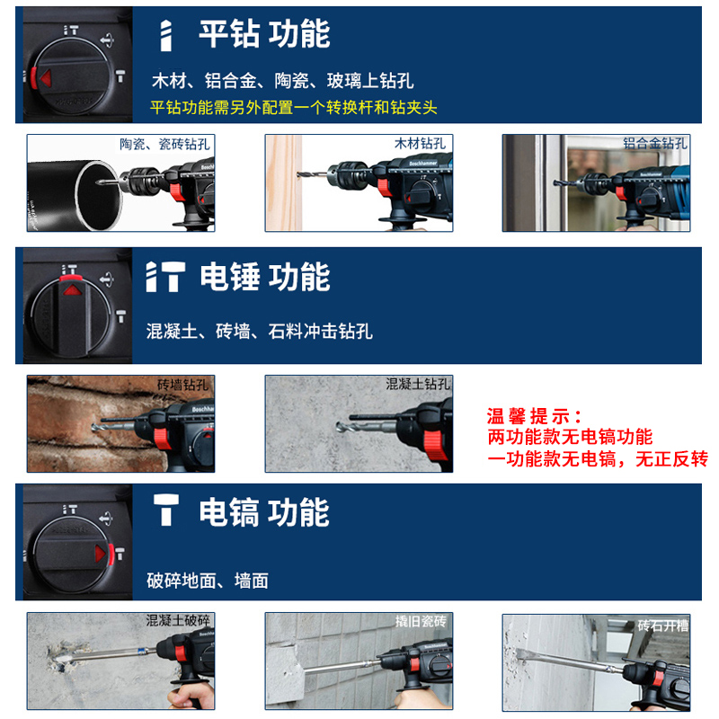 Bosch three-use four-pit rotary hammer drill GBH2-26E RE DRE electric pick original multi-function electric drill impact drill