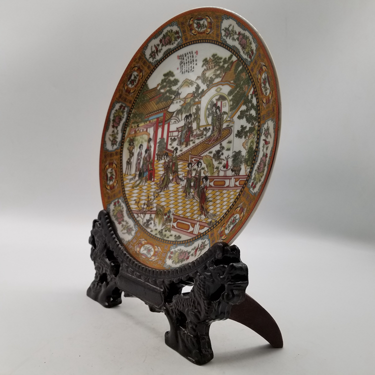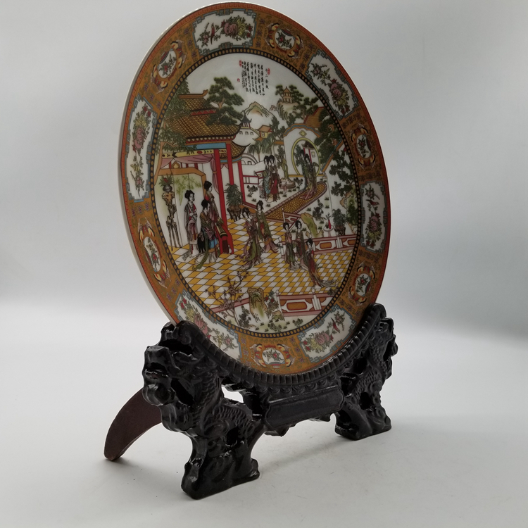Qingqian Lung Powder Color Sketching Gold Duojin Hairpin Tray Porcelain Tray Imitation Ancient Porcelain Living Room Home Swing Accessories Art Treasures
