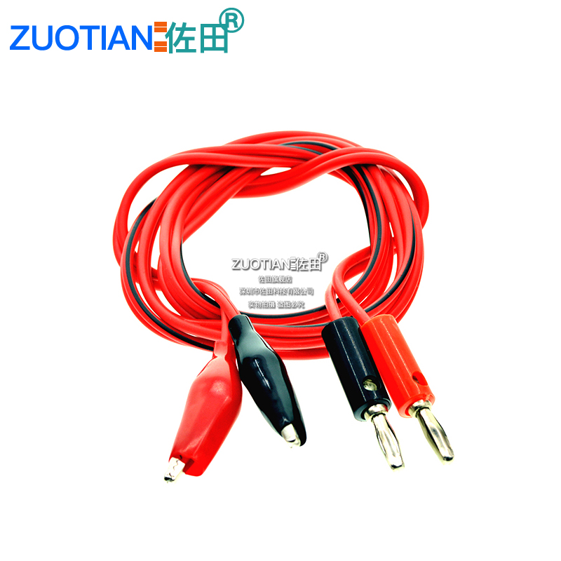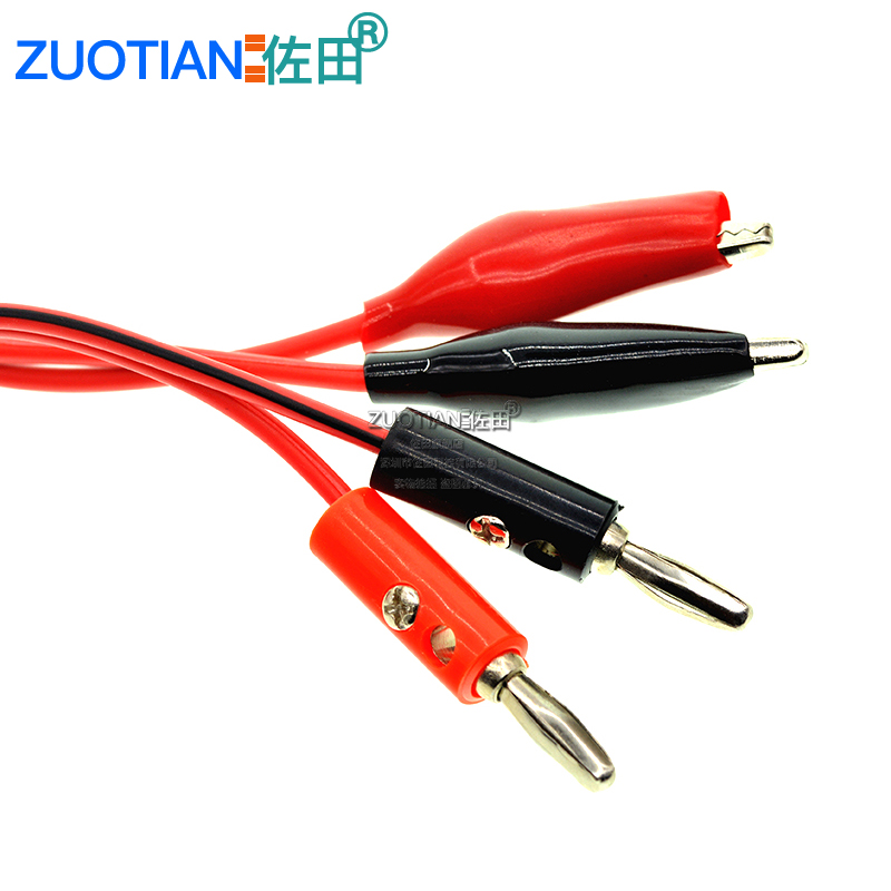 Banana plug to crocodile clip line Power test lead 2 plugs to 2 clips red and black lines 1 meter long