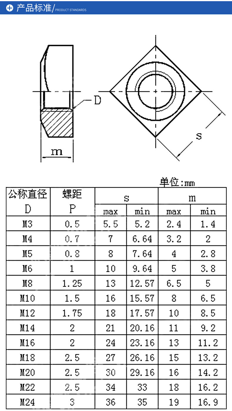 GB39 square nut four-way nut square nut squared roma M3-M16