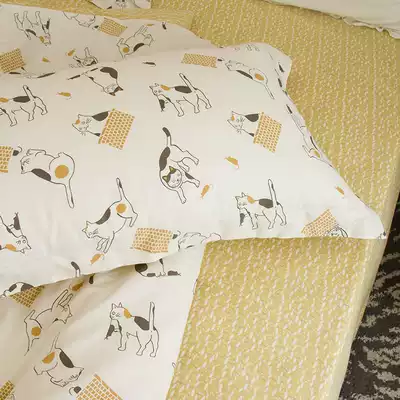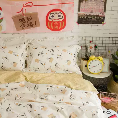 (House posture) Orange cat ten orange nine fat cotton bedding twill three-piece single student bed sheet BJ
