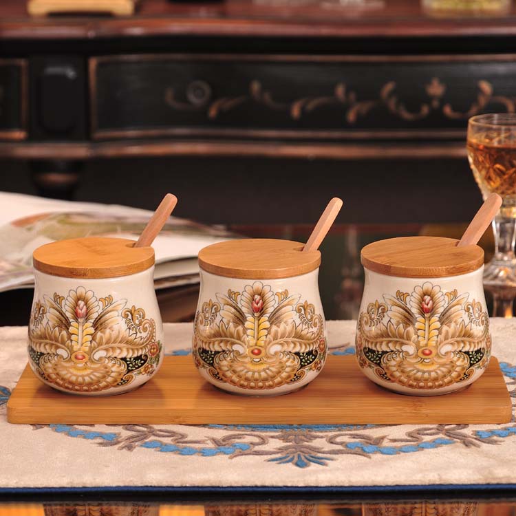 European-style retro luxury seasoning pot combination American-style ceramic pepper pot New Chinese-style sugar cup ingredient box Salt shaker