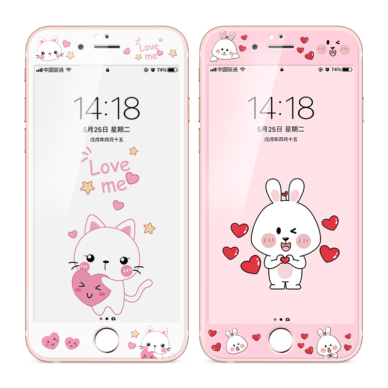 Kaki apple 7plus steel chemical film fullscreen coverage iphone8 mobile phone protective film 7 cute full-pack edge explosion protection 8plus color film cartoon film film woman i8 nano anti-fall anti-fingerprint 5