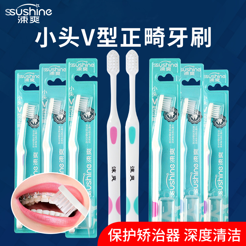 Sushuang V-shaped orthodontic toothbrush for orthodontic toothbrush special braces tooth protection gum soft hair small head adult braces toothbrush