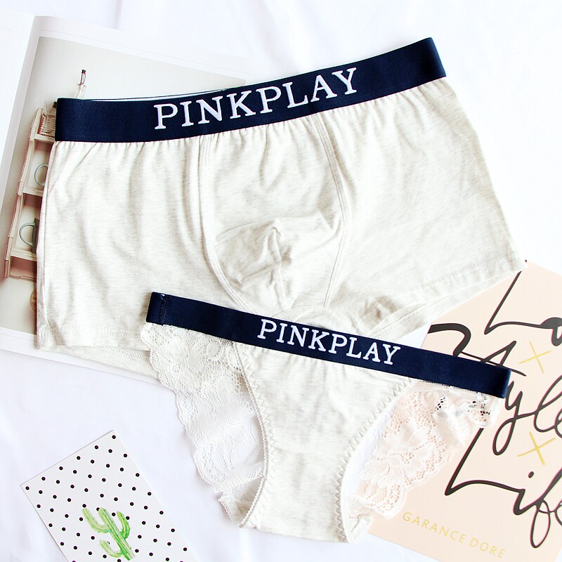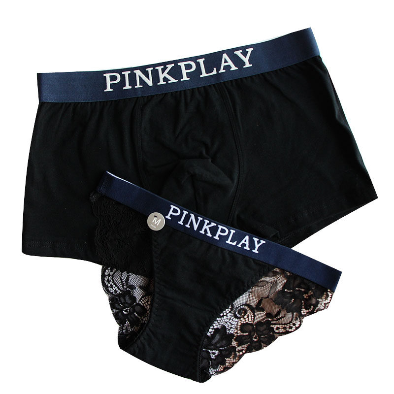 Couple underwear pure cotton sexy complete set of underwear Women's lace low waist briefs head cotton men's boxer shorts