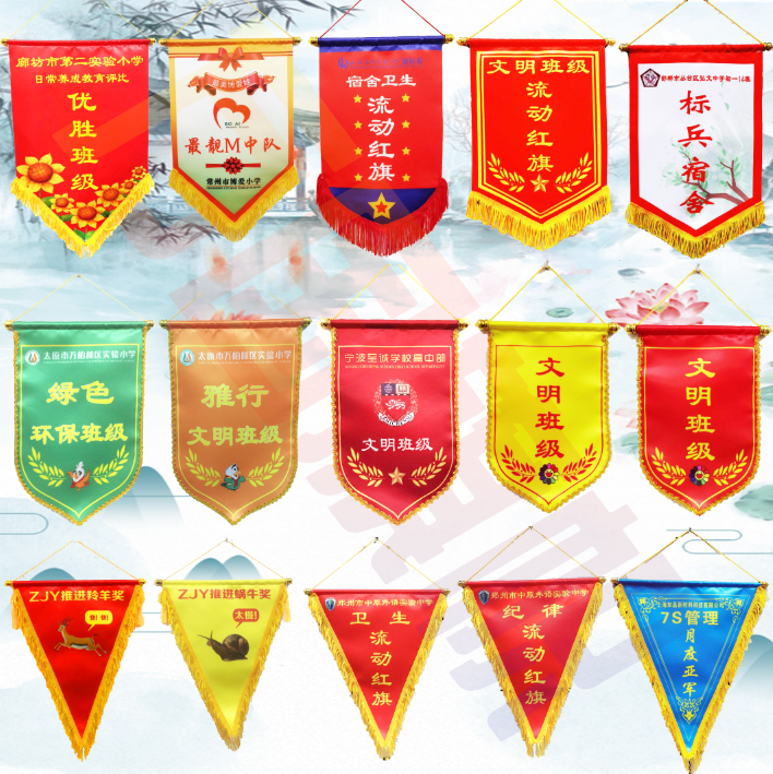 Triangle civilization dormitory bedroom mobile red flag school evaluation flag exchange flag Excellent class Health discipline customization
