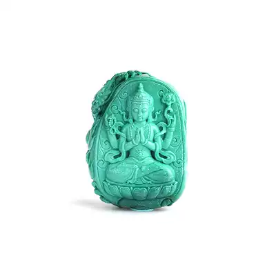 At the end of the easy ore turquoise qin gu jelly material systemic four-arm Guanyin Green Tara like God Maitreya thought carved pieces