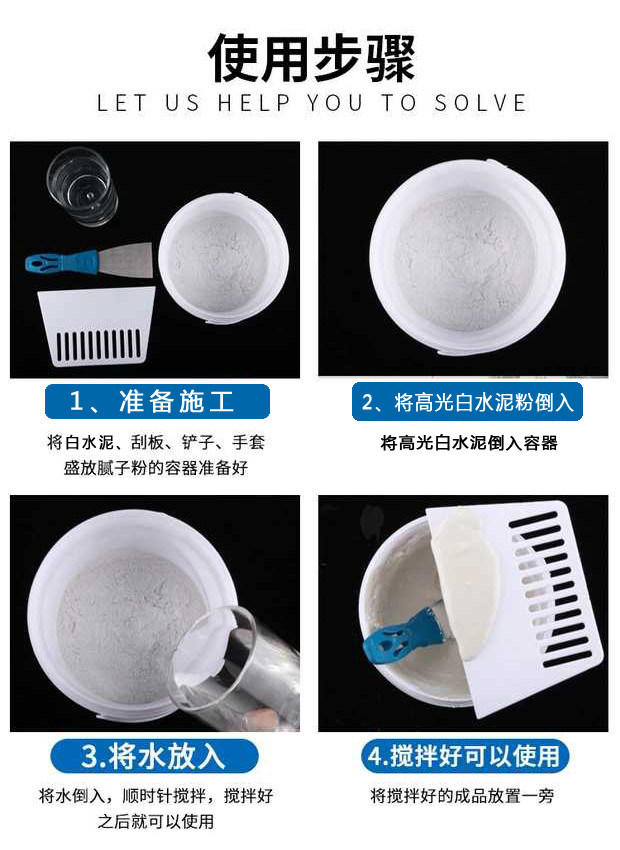 Wall renovation repair 5 kg interior wall smear repair water resistant high gloss white cement interior wall renovation putty paste