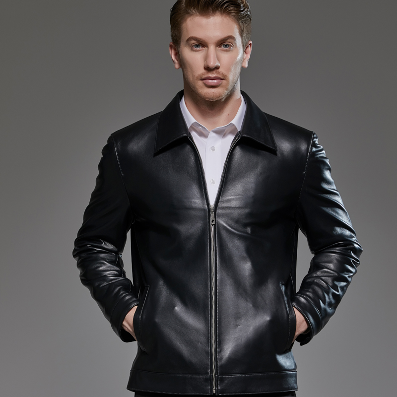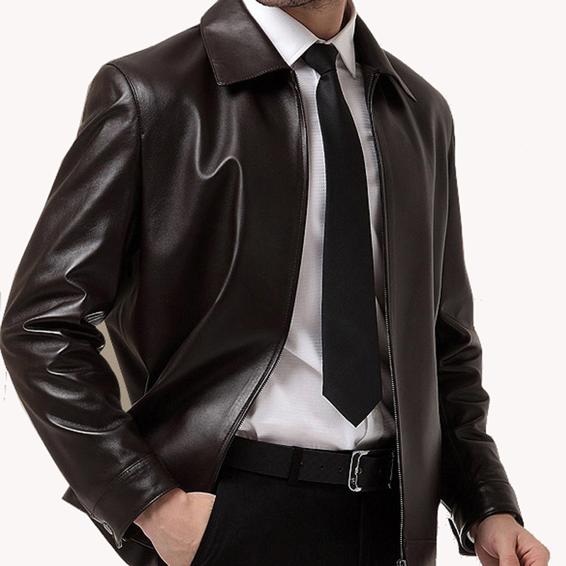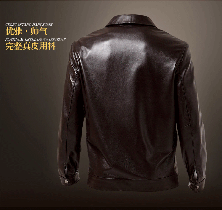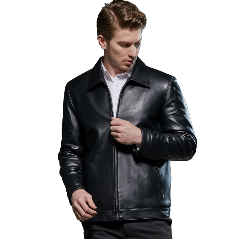 Large size men's genuine leather jacket men's plus fertilizer to increase the whole leather sheepskin jacket lapel leather jacket fat man thin