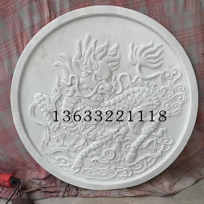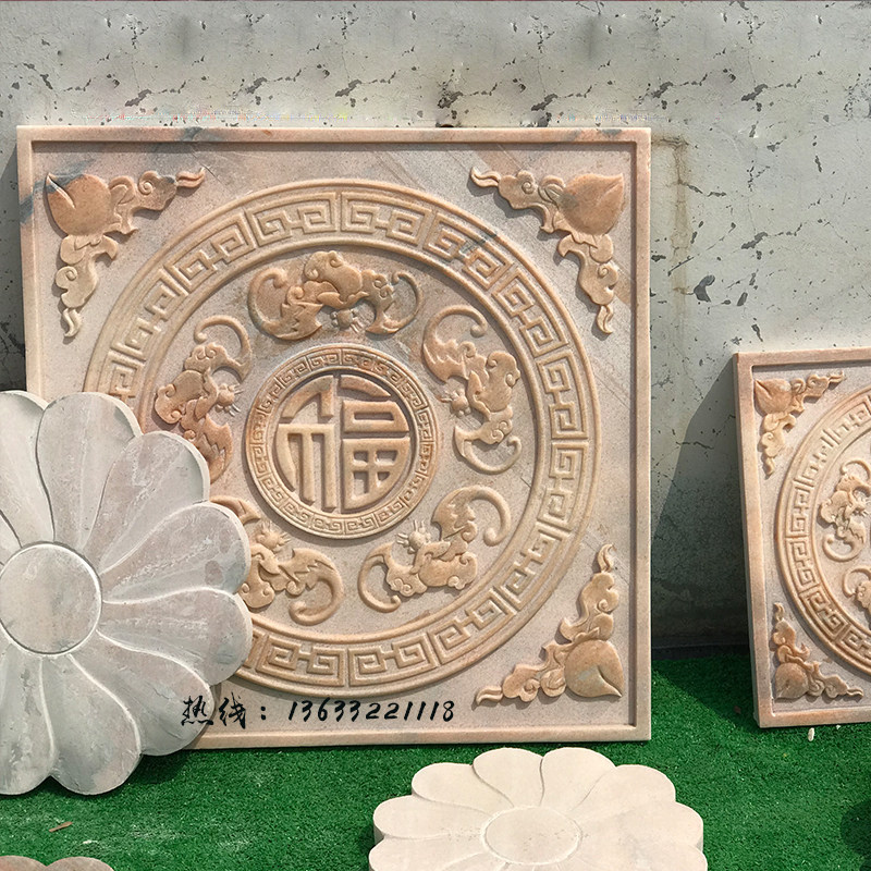 Marble Bas-relief Ocean Flower Screen Greet Visitors Songxuan Guan Han Baiyu Fu Character Bat Landscape Fresco Doorway Sculpture