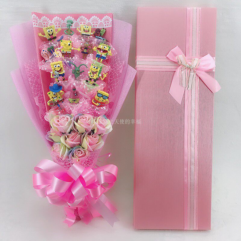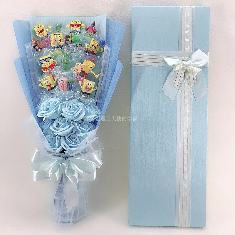 Creative SpongeBob SquarePants Model Cartoon Bouquet PP Cotton Scented Doll Gift Box Soap Flower Teacher's Day Birthday Gift