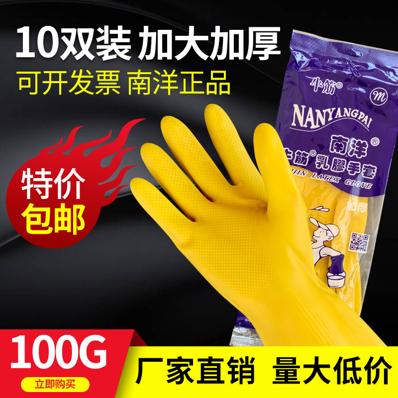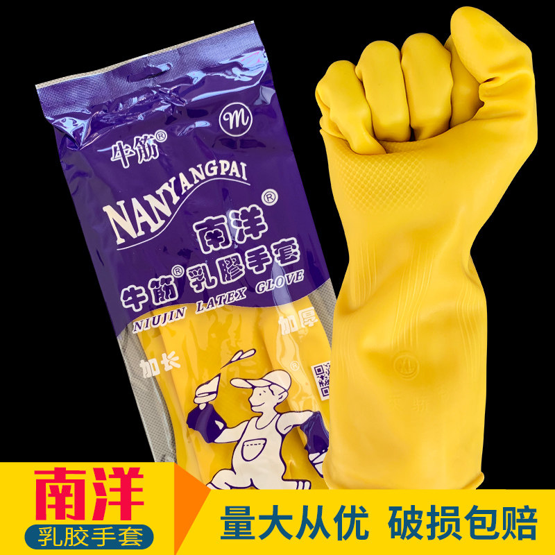Sky Arrogance Nanyang Thickened Rubber Bull Gluten Latex Gloves Labor work Wearable waterproof plastic dishwashing durable housework