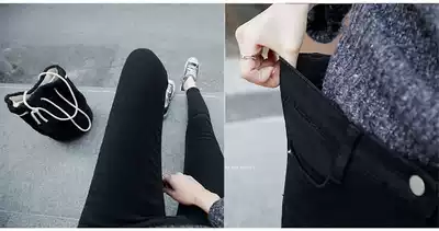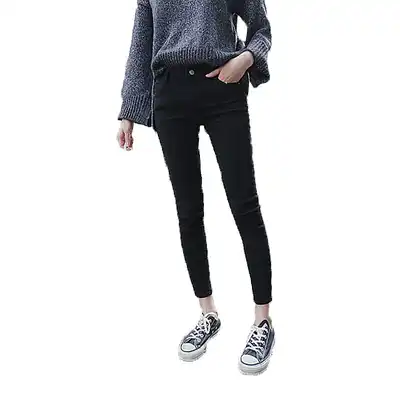 European station 2020 spring and autumn new women's jeans Korean high waist thin nine-point pants black tight little feet women