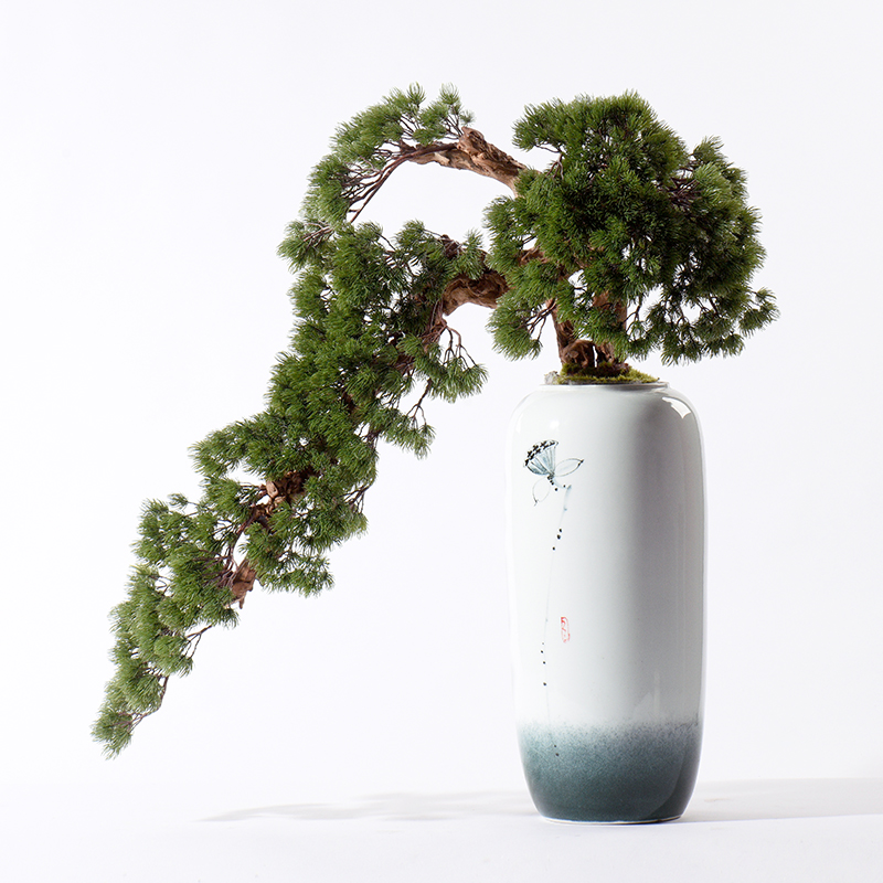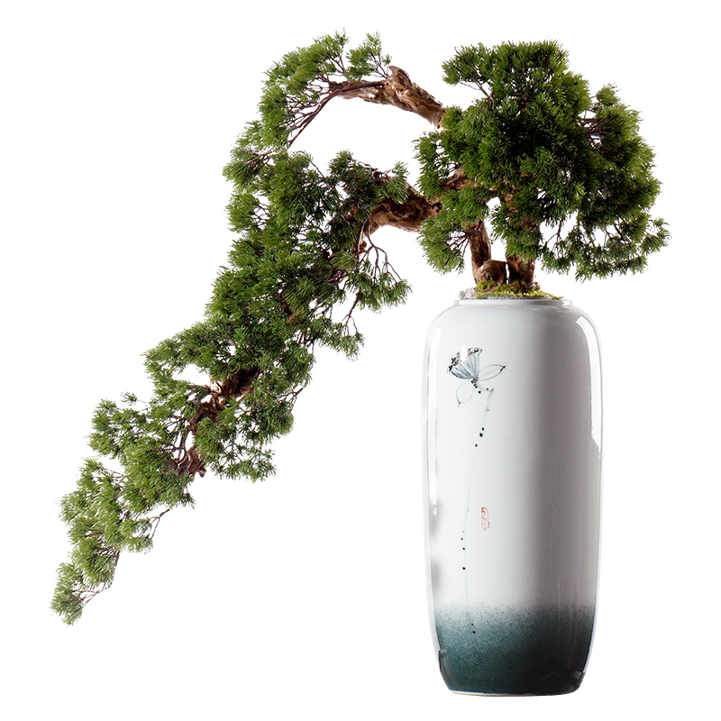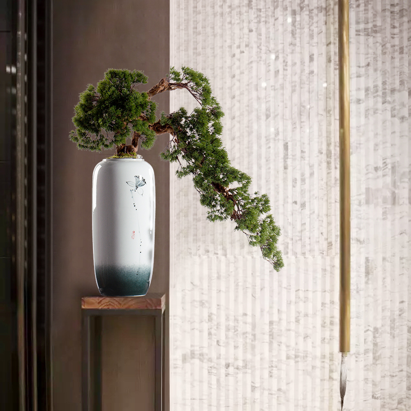 New Chinese Bonsai Solid Wood Simulation Green Plant Greet Guests Pine Pendulum Pieces Living Room Bookhouse Furniture City Hotel Soft Assembly Ornaments