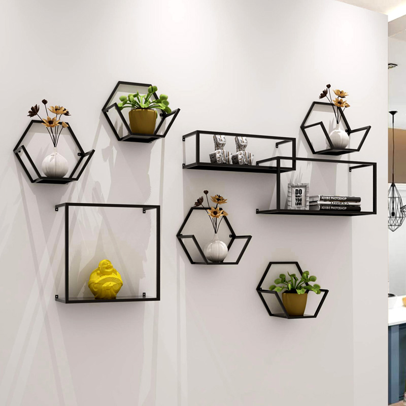 Nordic wall shelf creative wrought iron wall hanging simple bookshelf partition wall decoration flower stand living room display stand