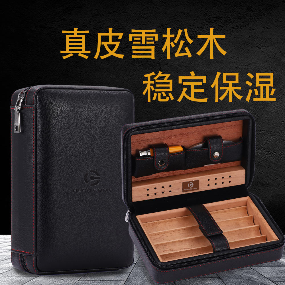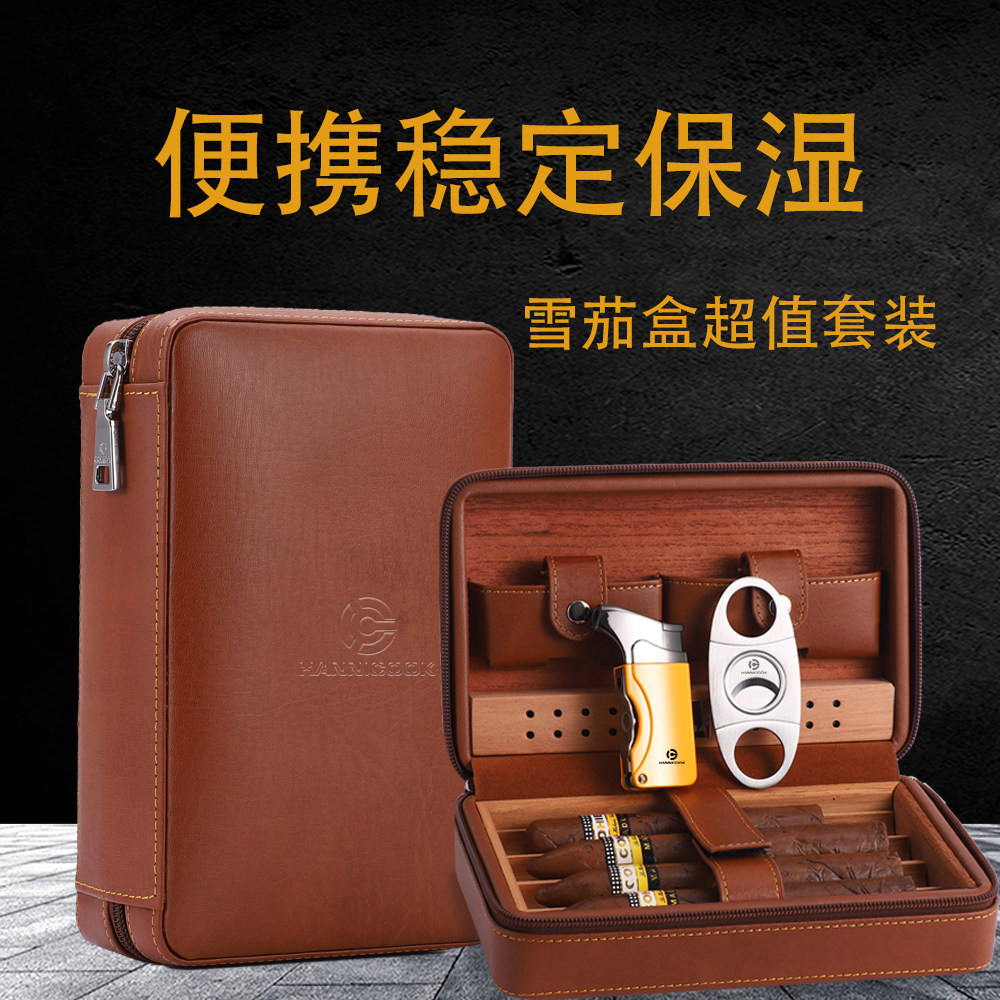Cigar Humidor Portable Cigar Cutter Lighter Three-piece Set Tool Imported Cigar Box Portable Cigar Bag