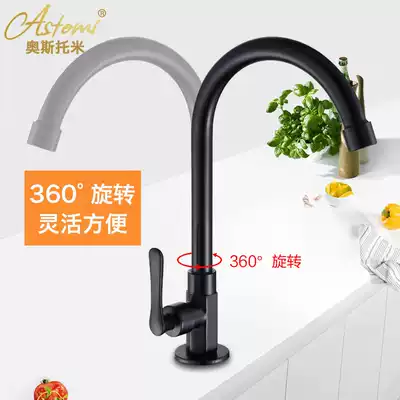 Frosted black all copper single cold water faucet Balcony basin column basin faucet laundry sink Kitchen sink can be rotated