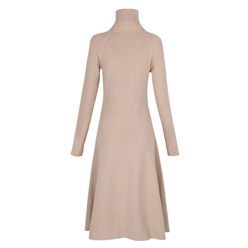 2021 autumn and winter new bottomed women's high neck long version over the knee net red lazy wind sweater dress outside