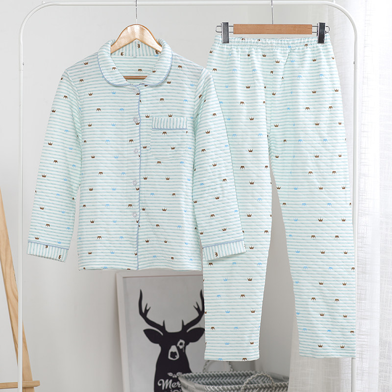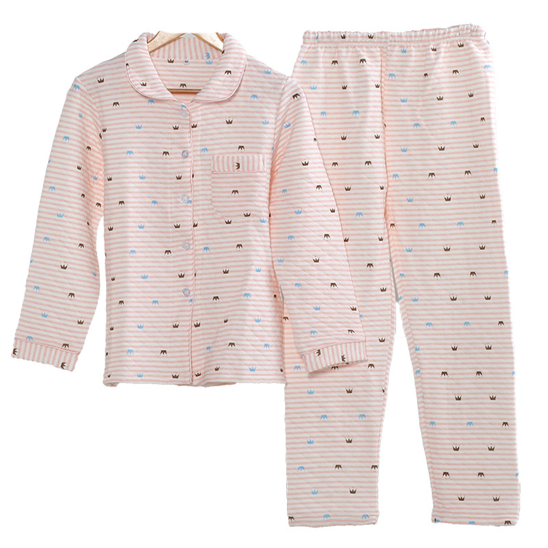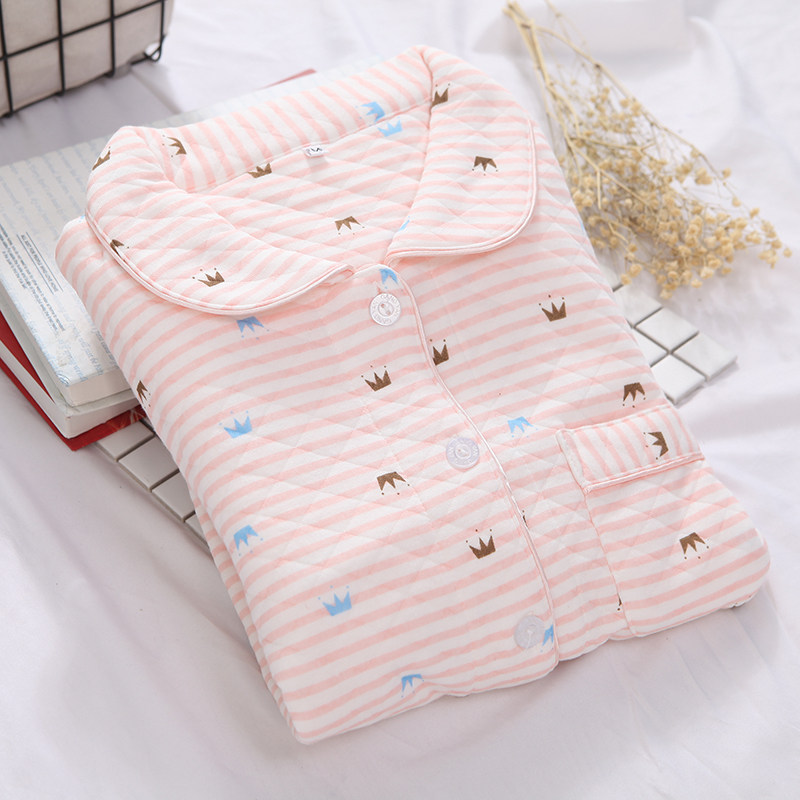 Japanese pajamas autumn women cotton long-sleeved thickened padded air layer fresh stripe casual loose home wear set