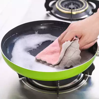 Dishwashing cloth double-sided velvet housework cleaning non-oil kitchen dish towel cleaning towel household thickened scrub cloth