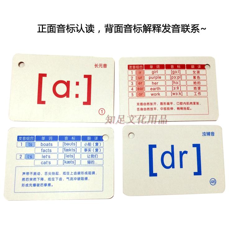 Young children English phonetic card for primary and secondary school students 48 international phonetic alphabet study card teaching materials with ring buckle