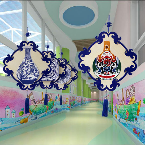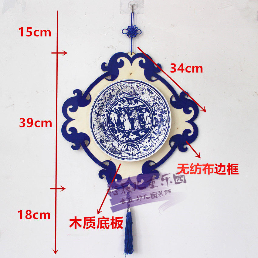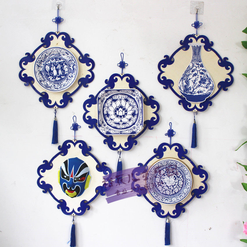 Green Flower Porcelain Pendant Accessories Creative China Wind Decoration Kindergarten Elementary School Classroom Hall Hung Decorated Wood Gift Instrument Traditional Culture