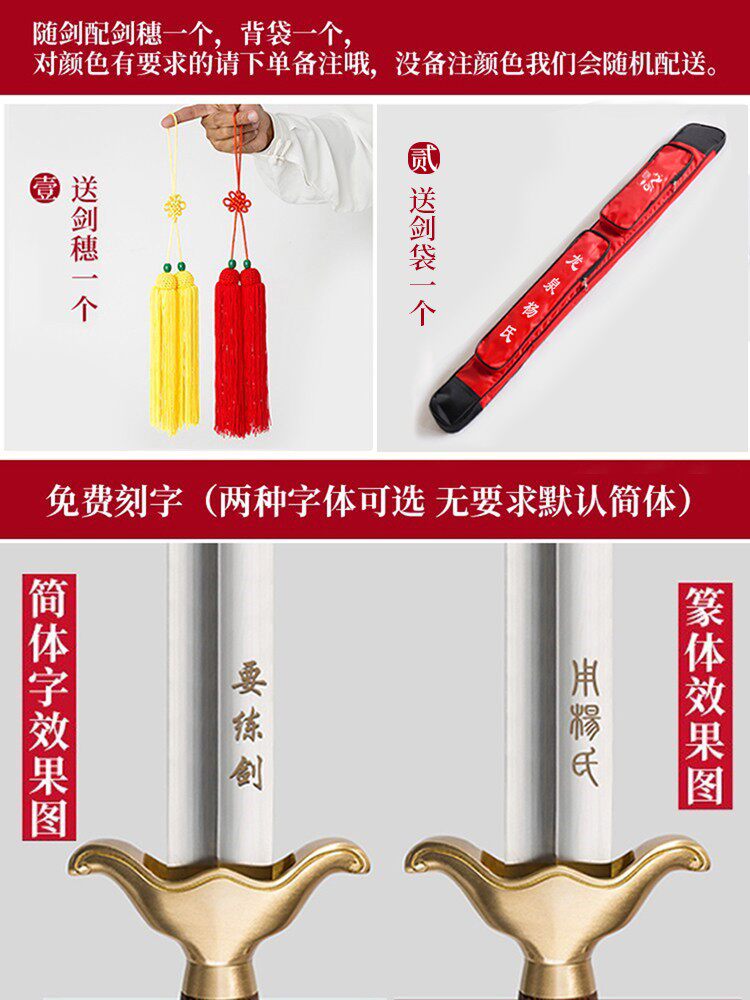 Longquan Yang's Stainless Steel Tai Chi Sword Twelve Zodiac Tai Chi Sword Martial Arts Soft Sword Men's and Women's Morning Exercise Sword Unedged