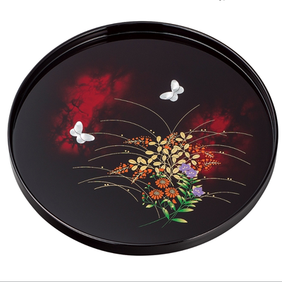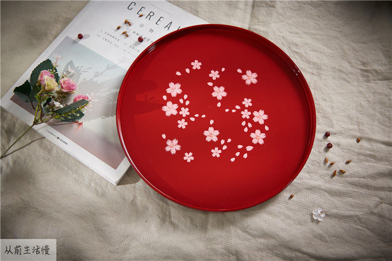 Japan Imports Mountains Lacquer Ware Hand-painted Cute Rabbit Cherry Blossom Round Day Style Tray Tea Tray Tea Ware Heatproof Dish