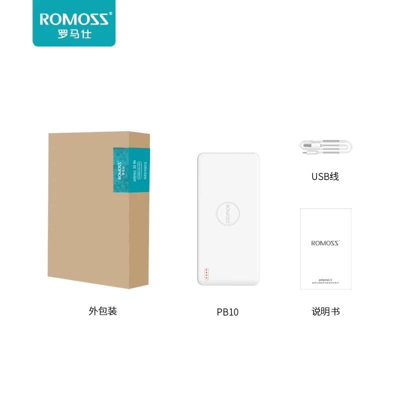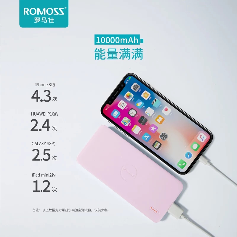Romans 10000m mAh slim portable mobile phone universal mobile charging colorful polymer power bank for apple x huawei p glory millet phablet phone universal