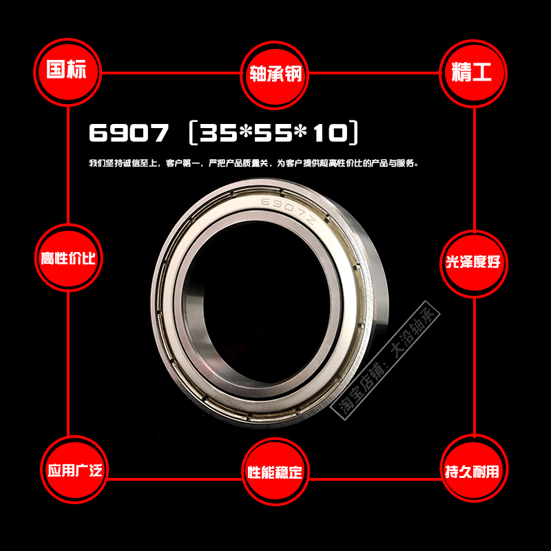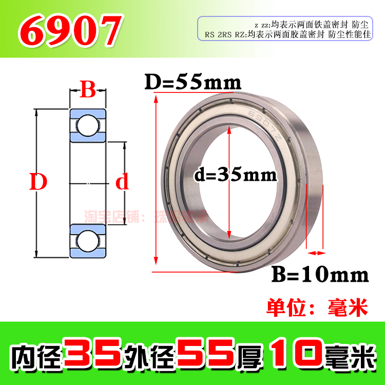 6907ZZ (35*55*10mm) 6907RS (35*55*10mm)Model Inner diameter * Outer diameter*Thickness Unit mm Other specifications please consult the customer