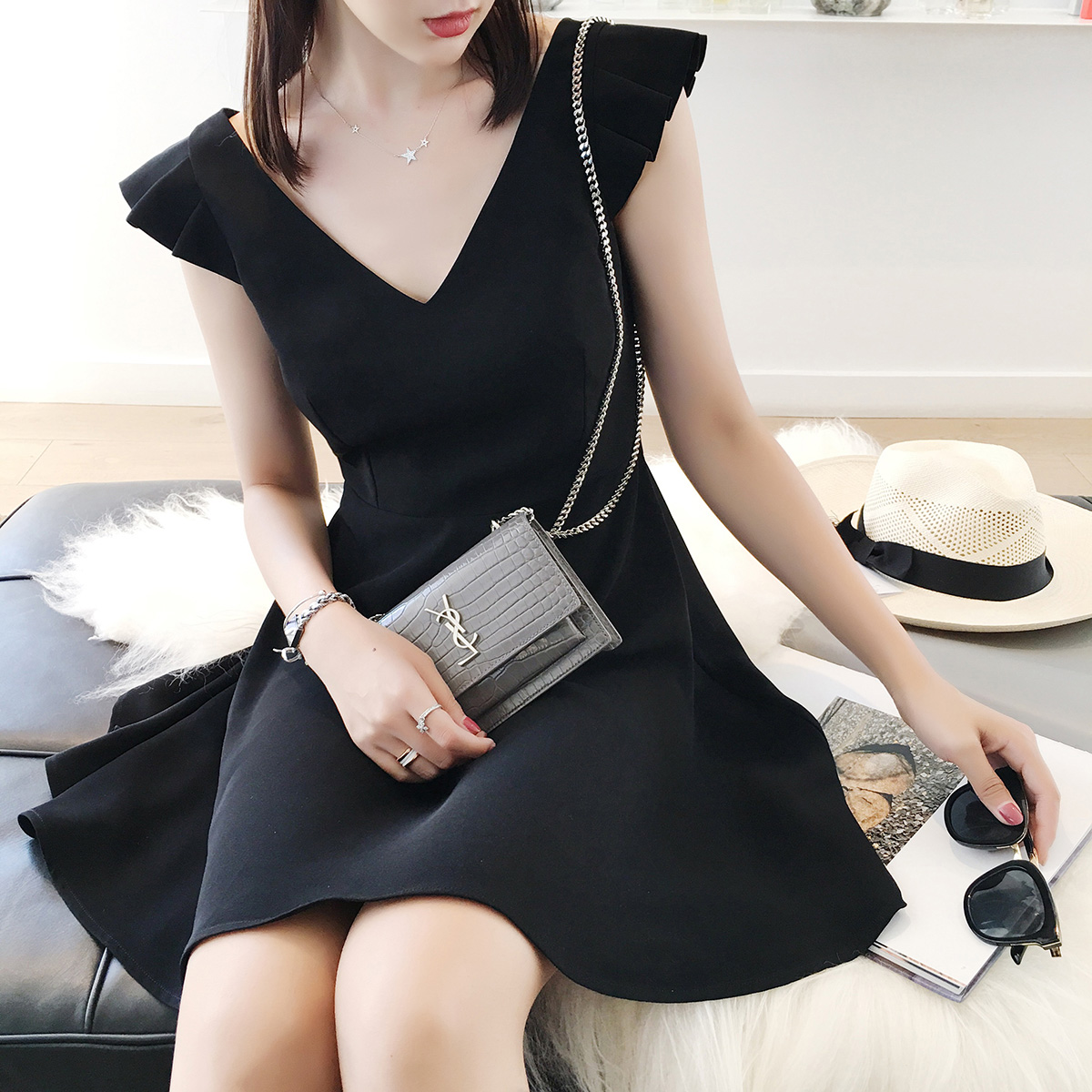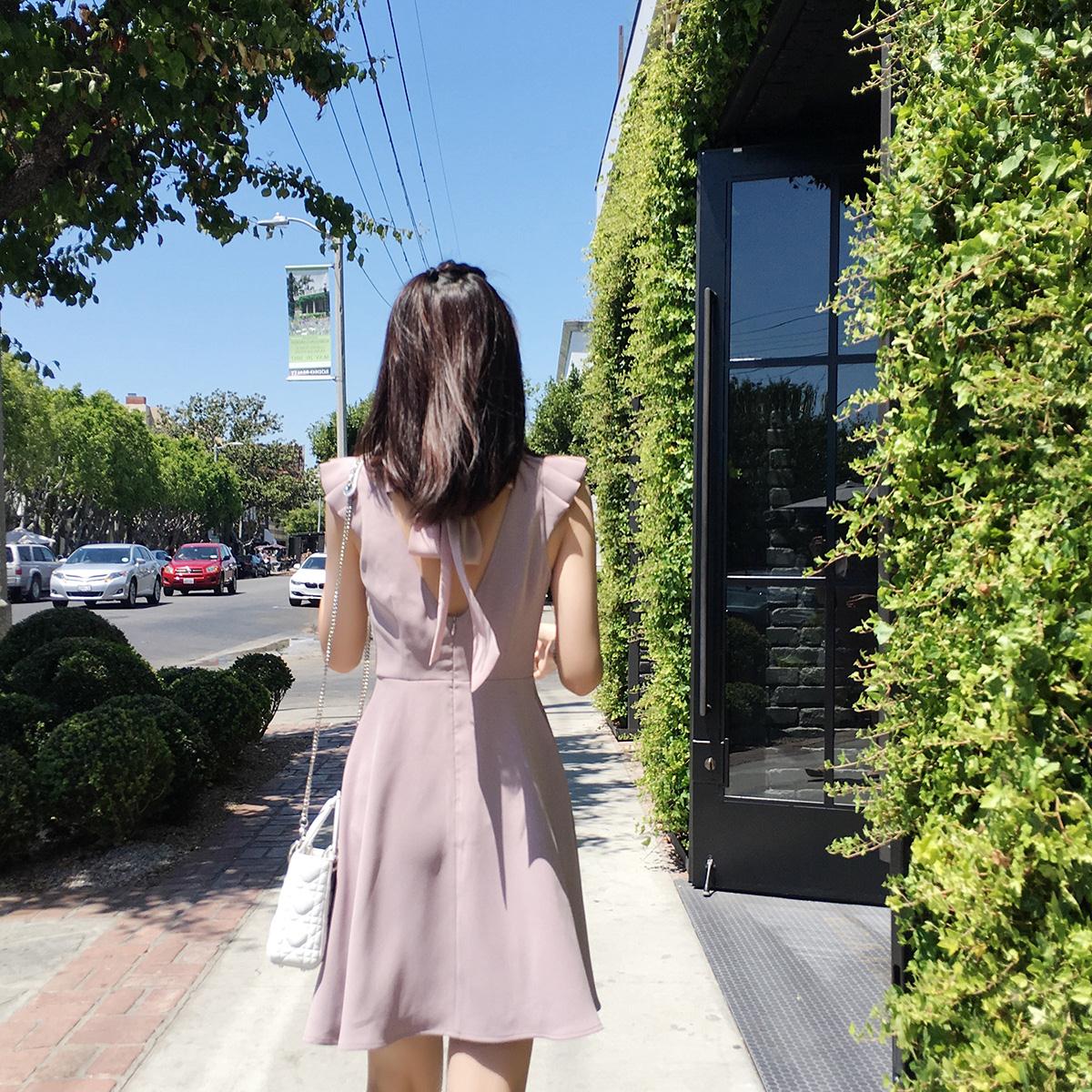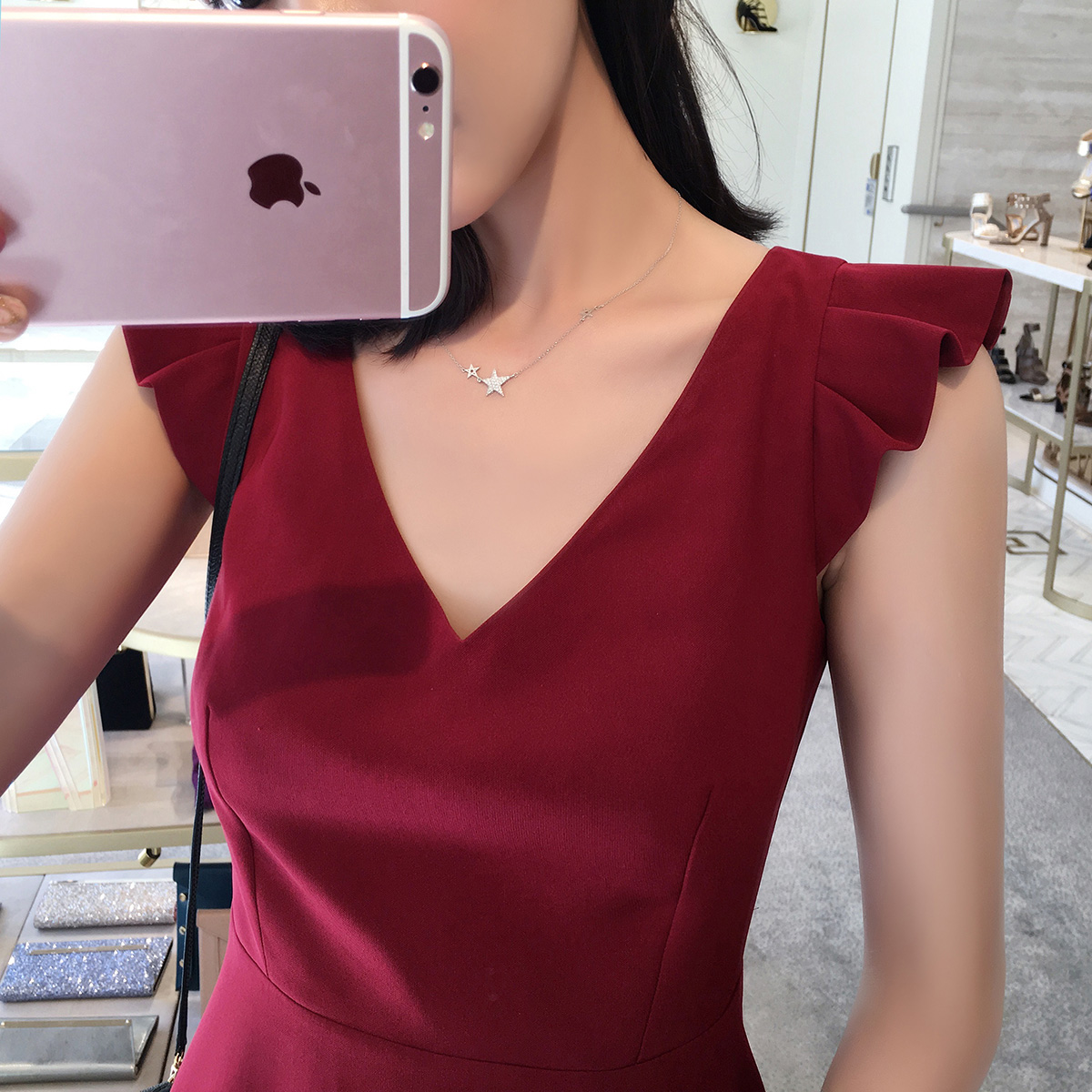 South Korea 2021 autumn new style careful machine leaking back dress women waist slim red sexy chiffon skirt