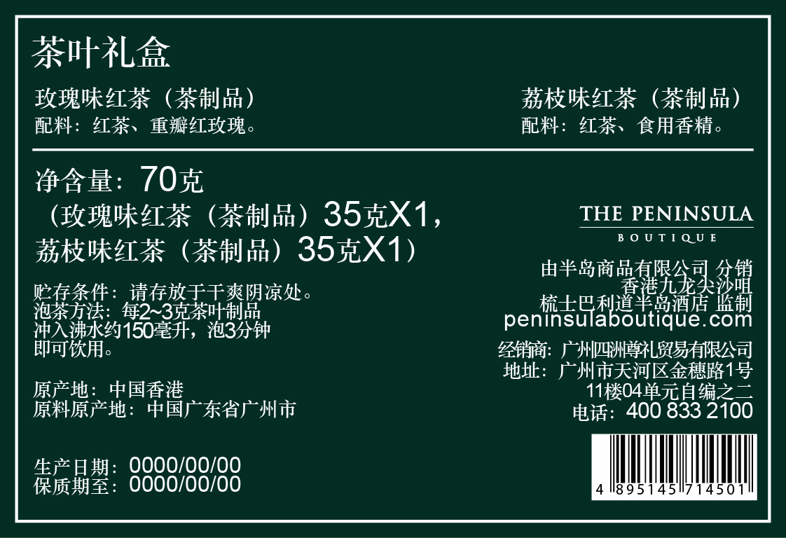 China Hong Kong Peninsula Boutique Rose black tea Lychee flavor black tea gift pot gift box for Elders Peninsula