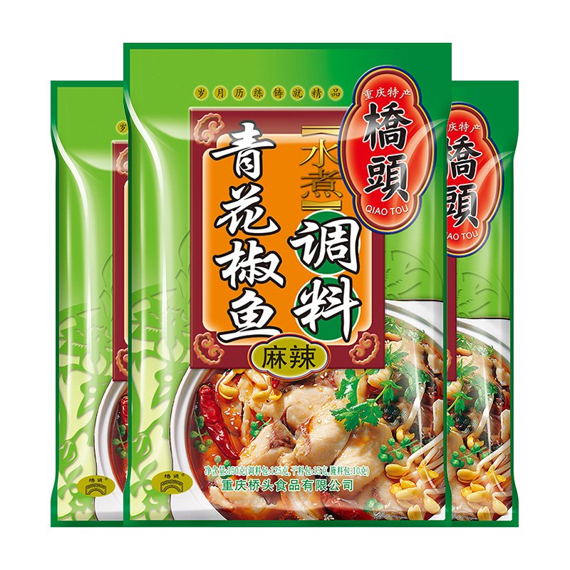 Bridgehead flagship store official online Sichuan Taste Green Pepper Fish Seasoning 150g * 3 sacks of water to cook fish stock Home 3 Small fit