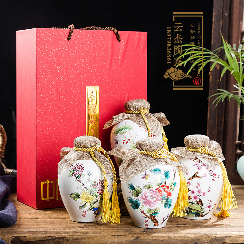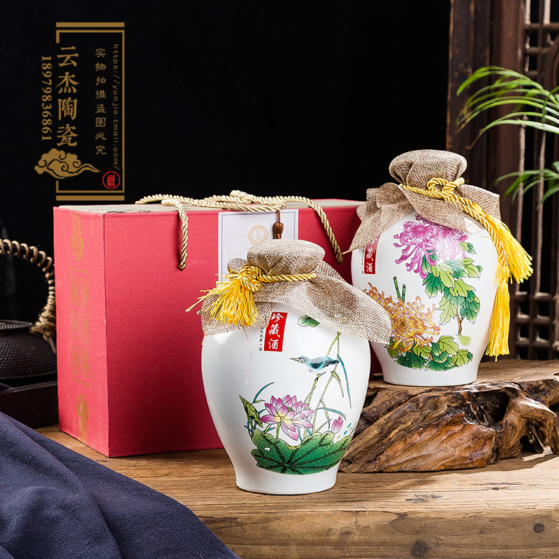 Ceramic wine bottle 1 catty 5 catties 10 decorative household antique Chinese liquor bottle small wine pot empty wine tank sealed wine jar